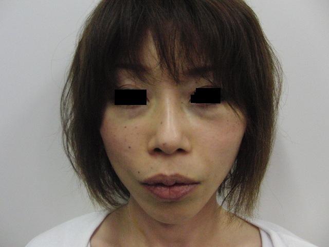 手術直後です。頬骨の下のへこみの改善、法令線は浅くなり、口角も気持ち挙がっています。フェイスラインの改善、これはまた横からの画像で判断いただきたいと思います。